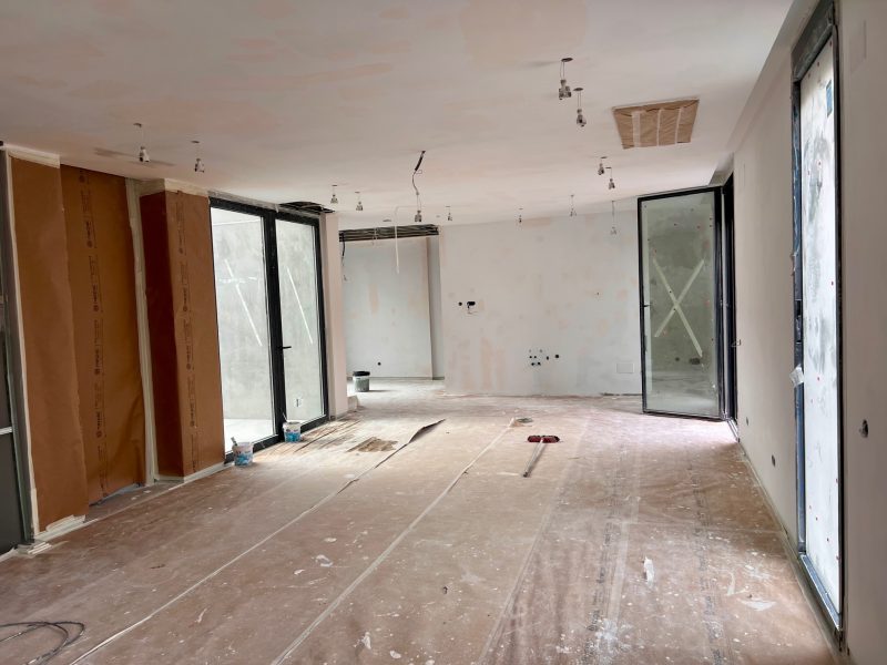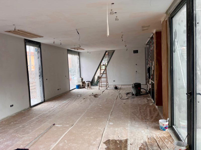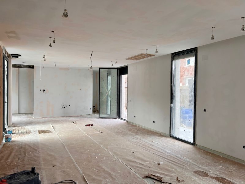 La ejecución de la obra ha comenzado tras la obtención de la licencia correspondiente, y actualmente se encuentra en fase avanzada, con la distribución interna y sus instalaciones en proceso. Entre las características destacadas de este proyecto se encuentran la implementación de sistemas de aerotermia, paneles fotovoltaicos y un diseño integral de iluminación, además de un ascensor que conecta los 4 niveles.