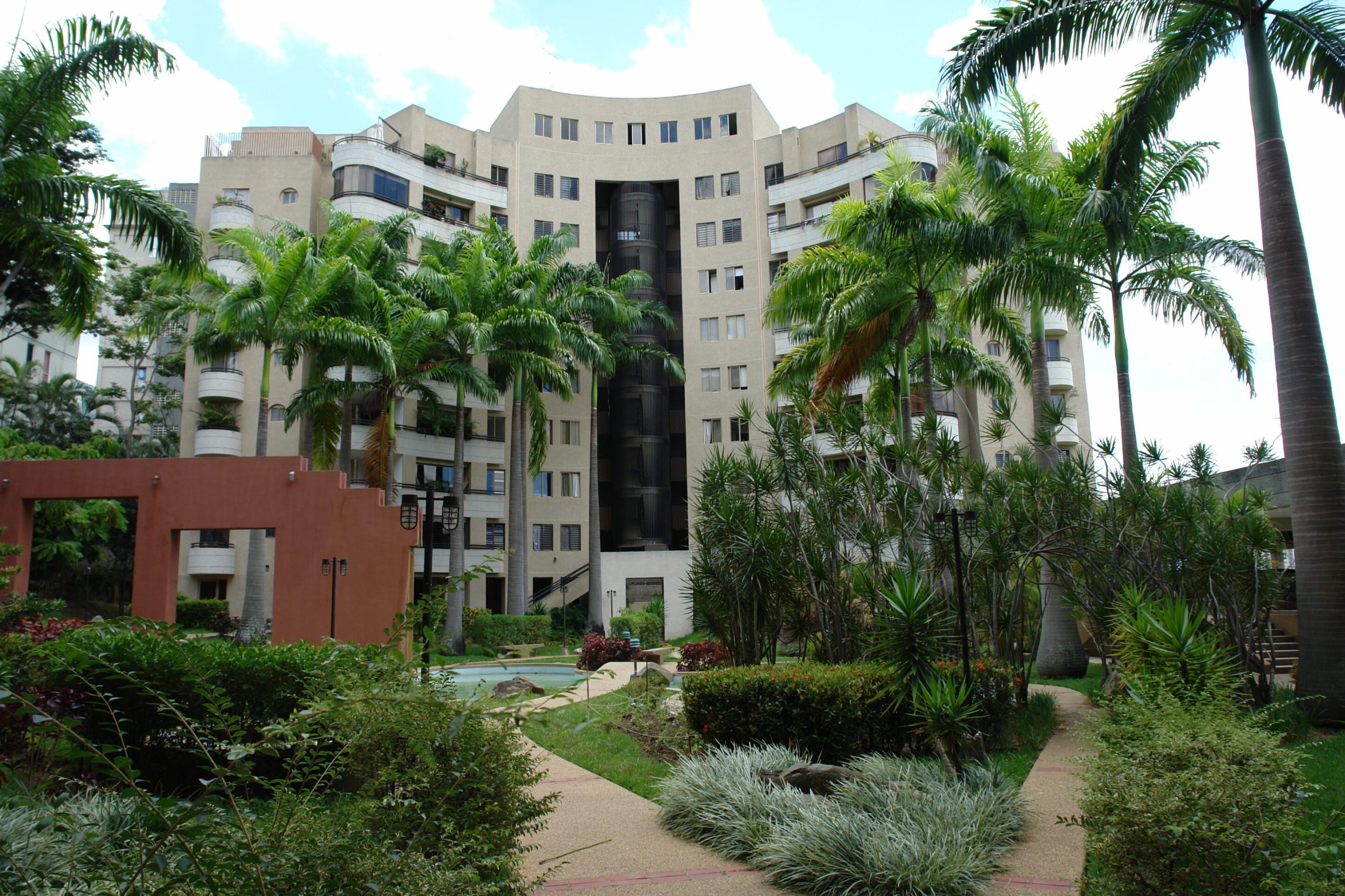 Jardín Santa Eduvigis is a unique residential complex consisting of two buildings, strategically located on 2nd Avenue between 5th and 6th Transversals in the prestigious Santa Eduvigis neighborhood, in the eastern sector of Caracas. The innovative design of its structures is distinguished by curved lines that surround green spaces and common areas, highlighting carefully landscaped grounds that include a serene artificial lake, majestic tropical palm trees, and welcoming walkways connecting both buildings.