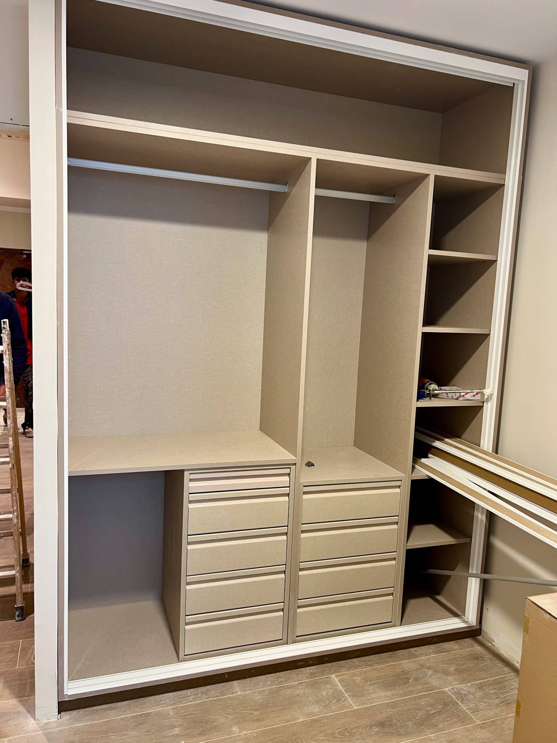 Para garantizar un adecuado aislamiento interior, se aplicaron soluciones específicas para reducir la transmisión acústica con las viviendas colindantes, acompañadas de nuevos sistemas de tabiquería en pladur para materializar la distribución propuesta.