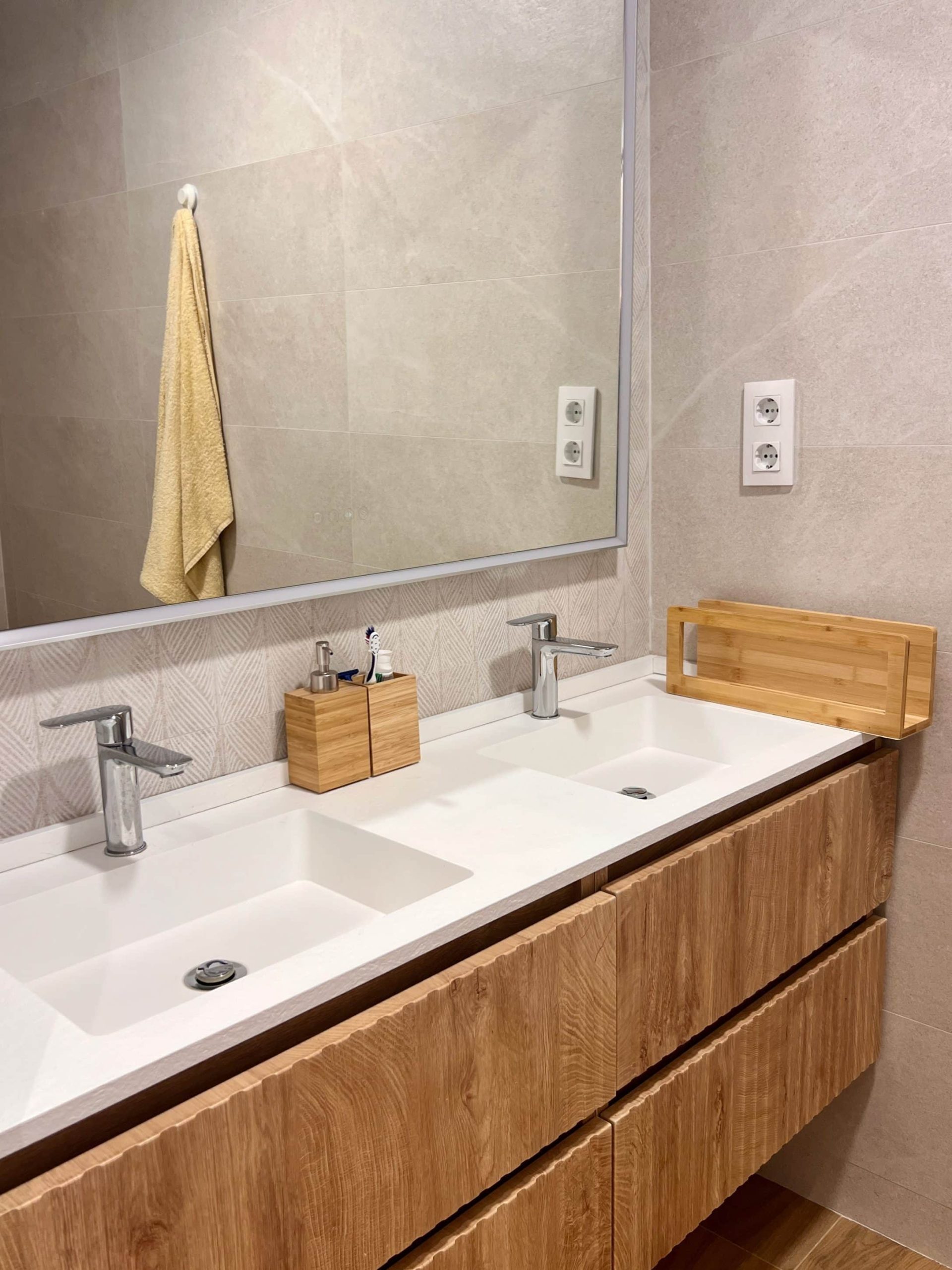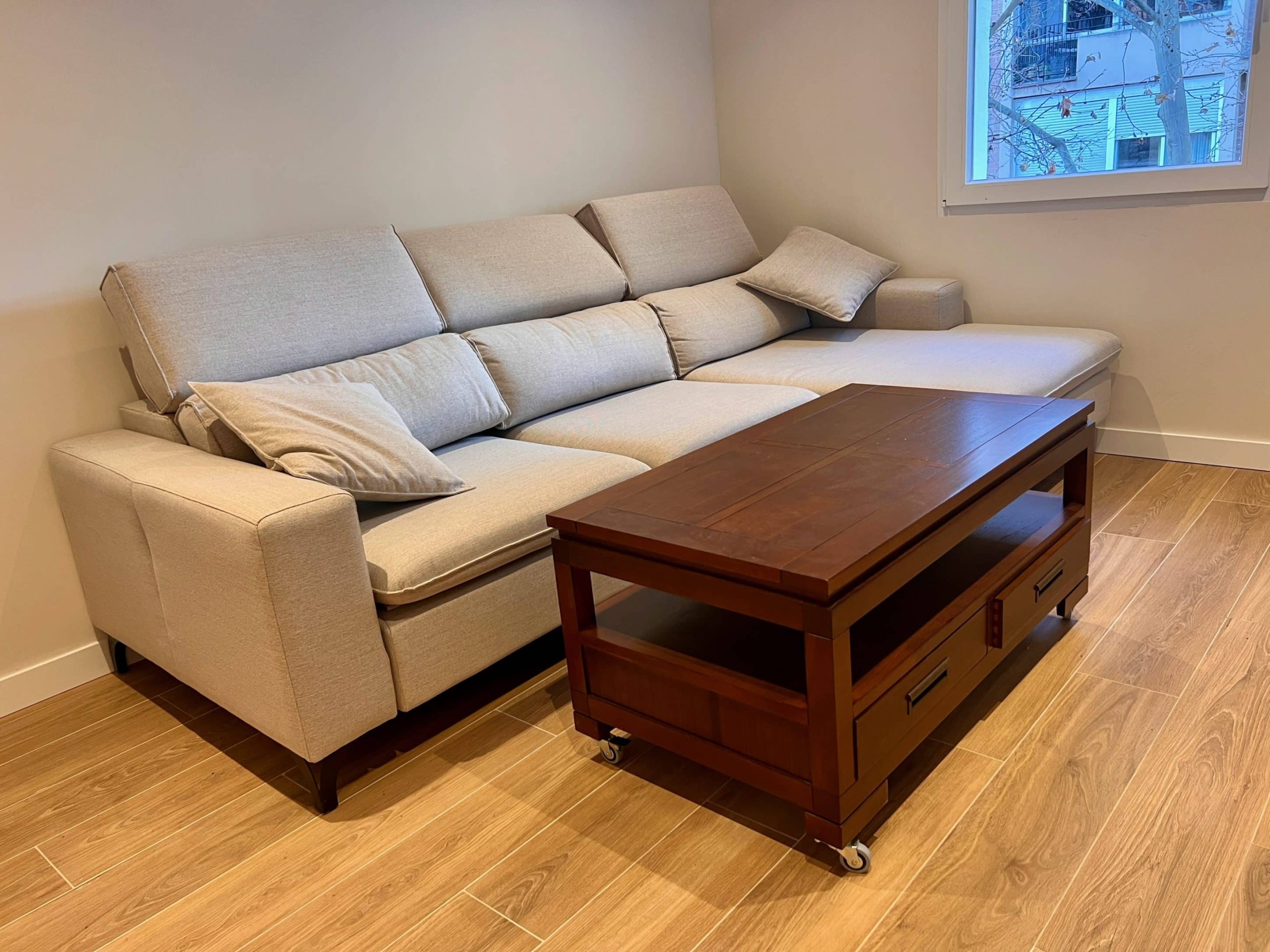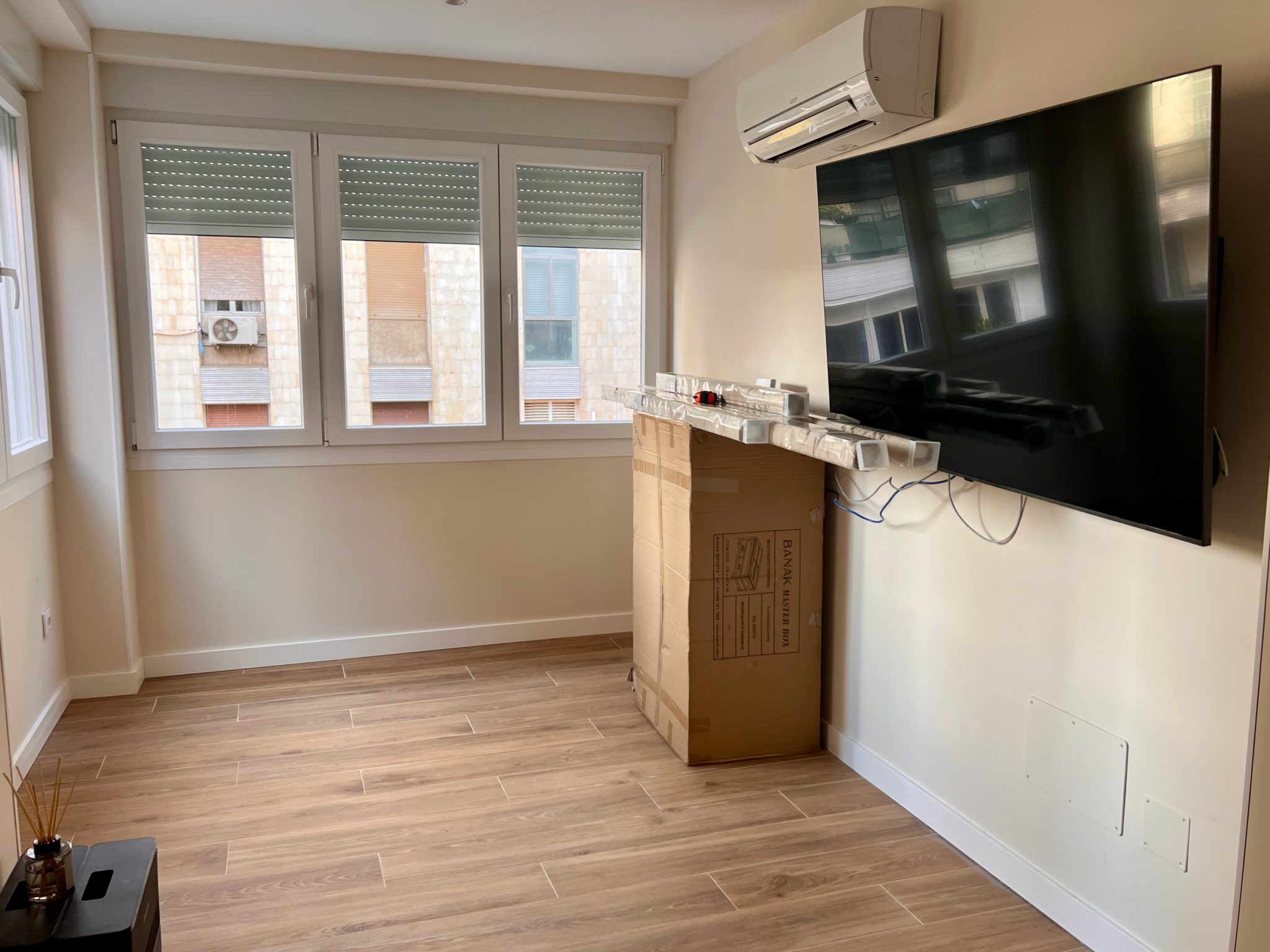 Nos encargaron la reforma integral de un piso muy deteriorado de aproximadamente 80 m², originalmente distribuido en tres dormitorios y un baño. El estado general de la vivienda, unido al deseo de los propietarios de contar con un hogar más funcional y moderno, motivó una intervención completa que comenzó con el derribo de todos los tabiques interiores, respetando únicamente los muros de carga, para permitir el desarrollo de un nuevo proyecto arquitectónico tomando como base un plano elaborado por el mismo propietario.