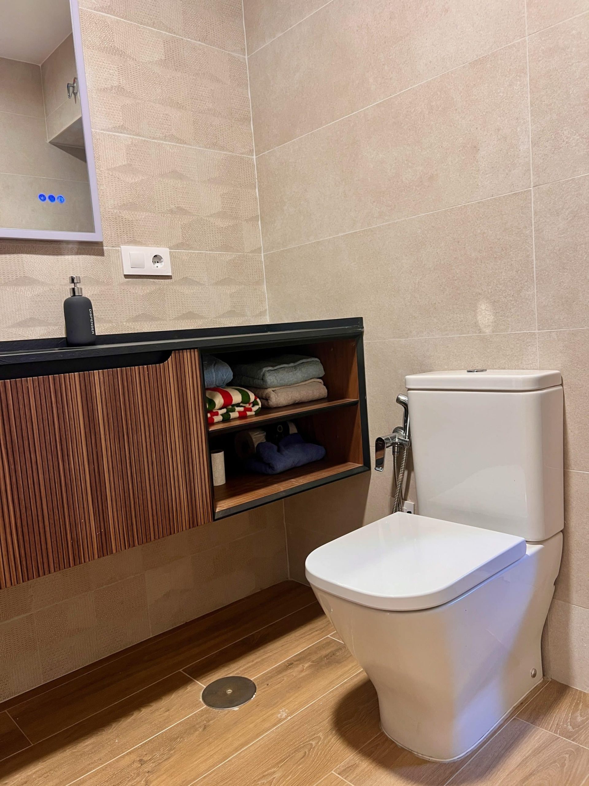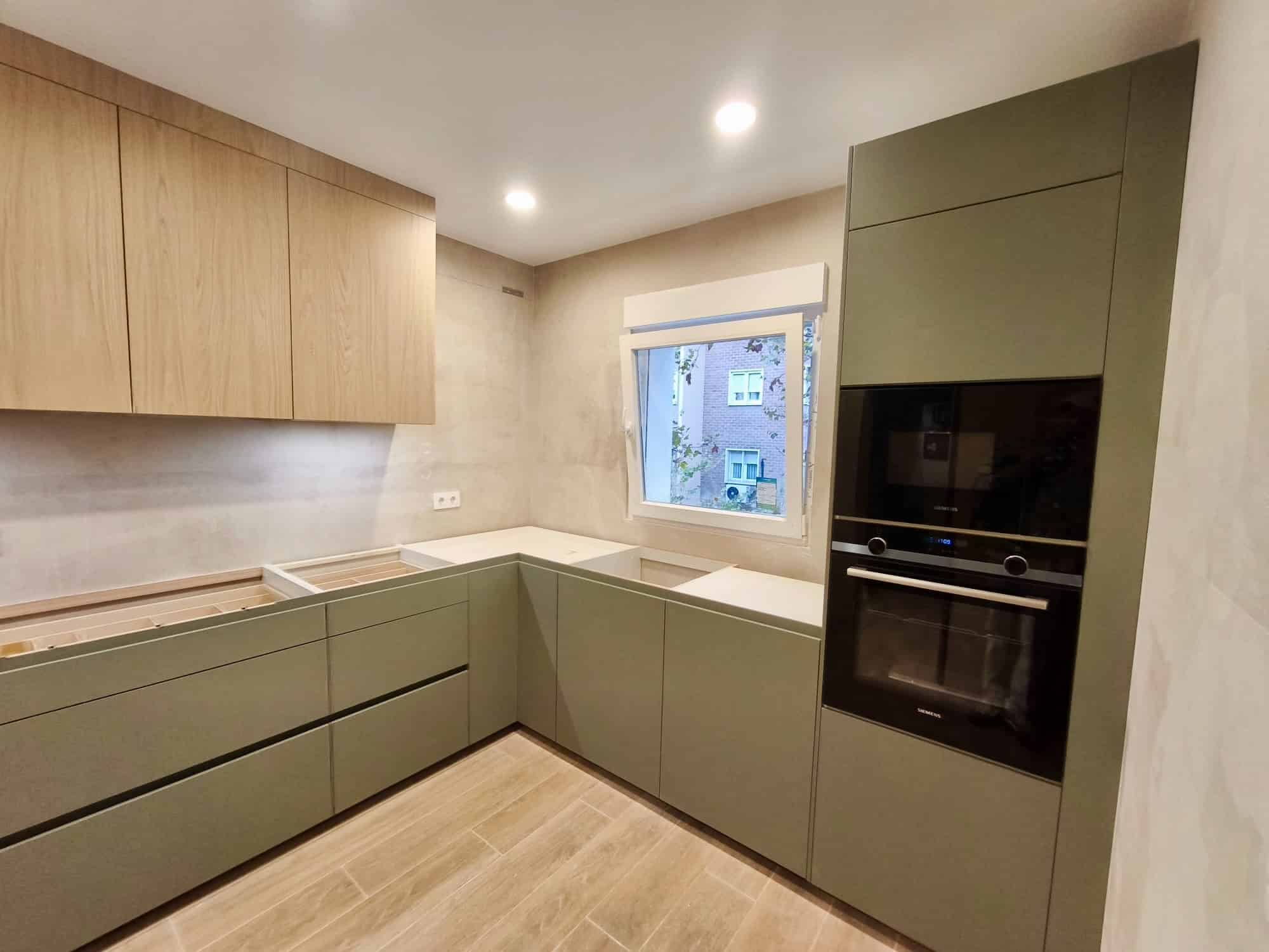 La ejecución de la reforma contempló la renovación total de las instalaciones, incluyendo calefacción por suelo radiante, electricidad, fontanería y telecomunicaciones, todas ellas dimensionadas según normativa actual. También se implementó un moderno sistema de aerotermia para alimentar el suelo radiante y el agua caliente sanitaria, aportando máxima eficiencia energética y confort.