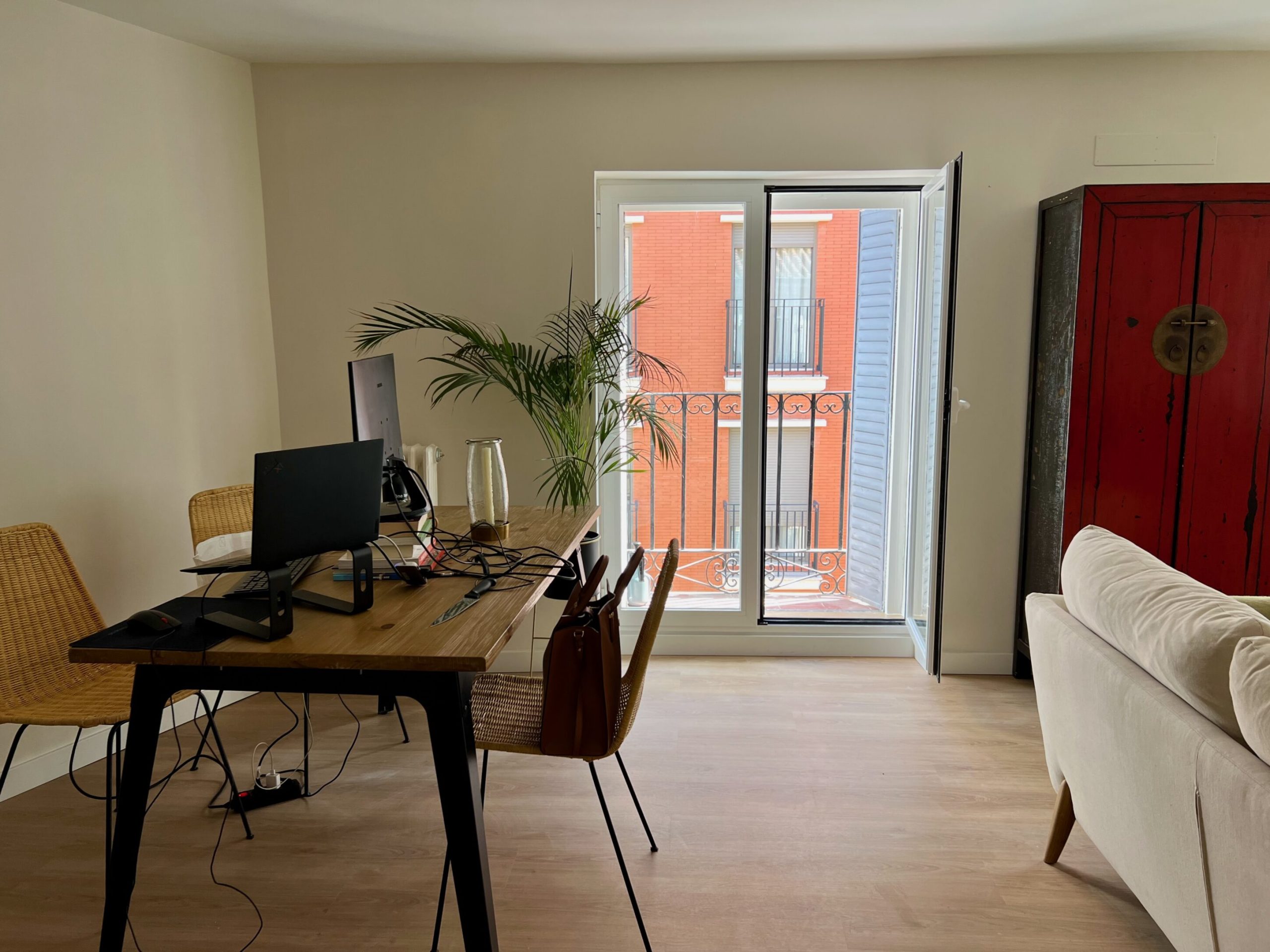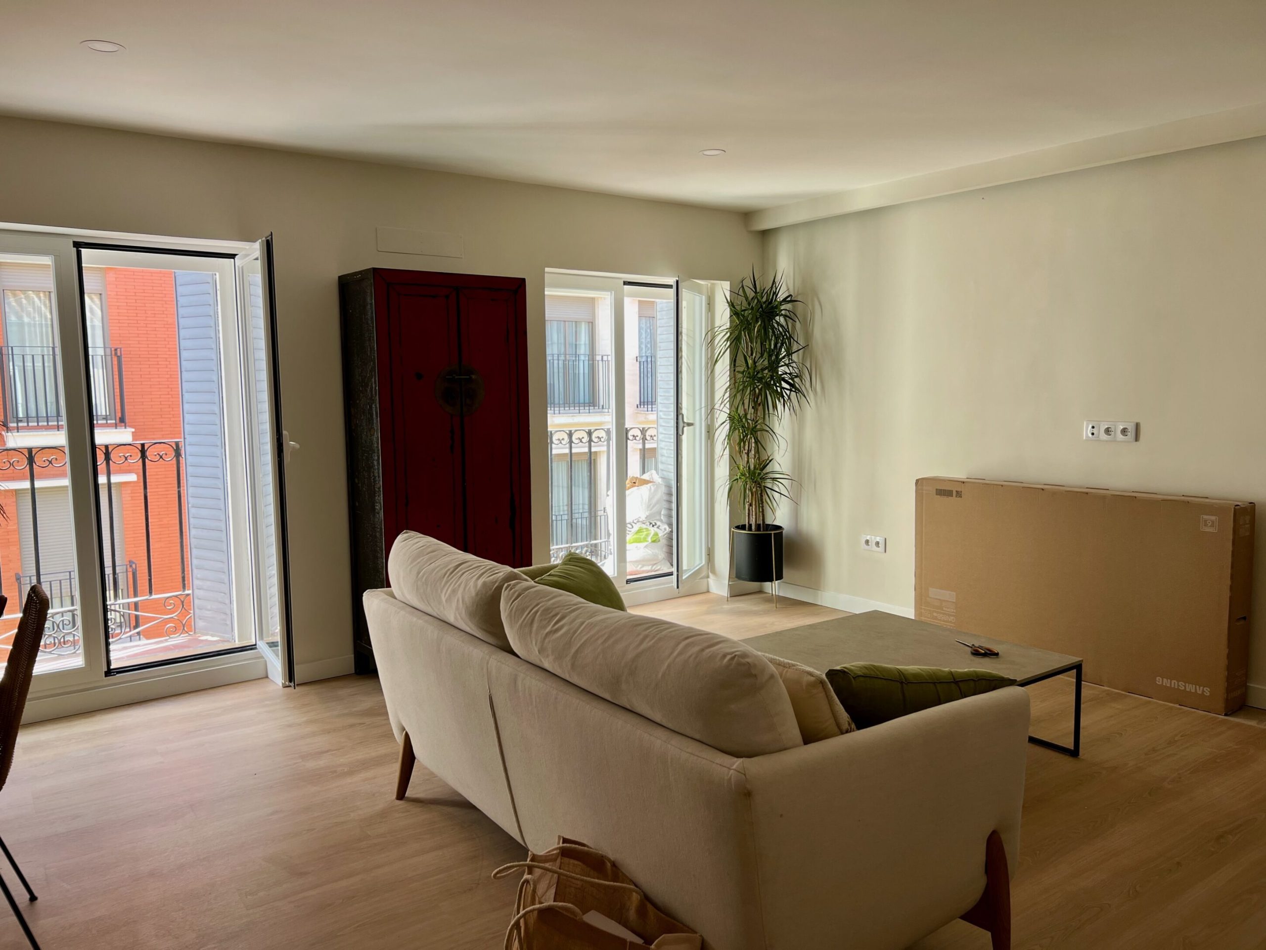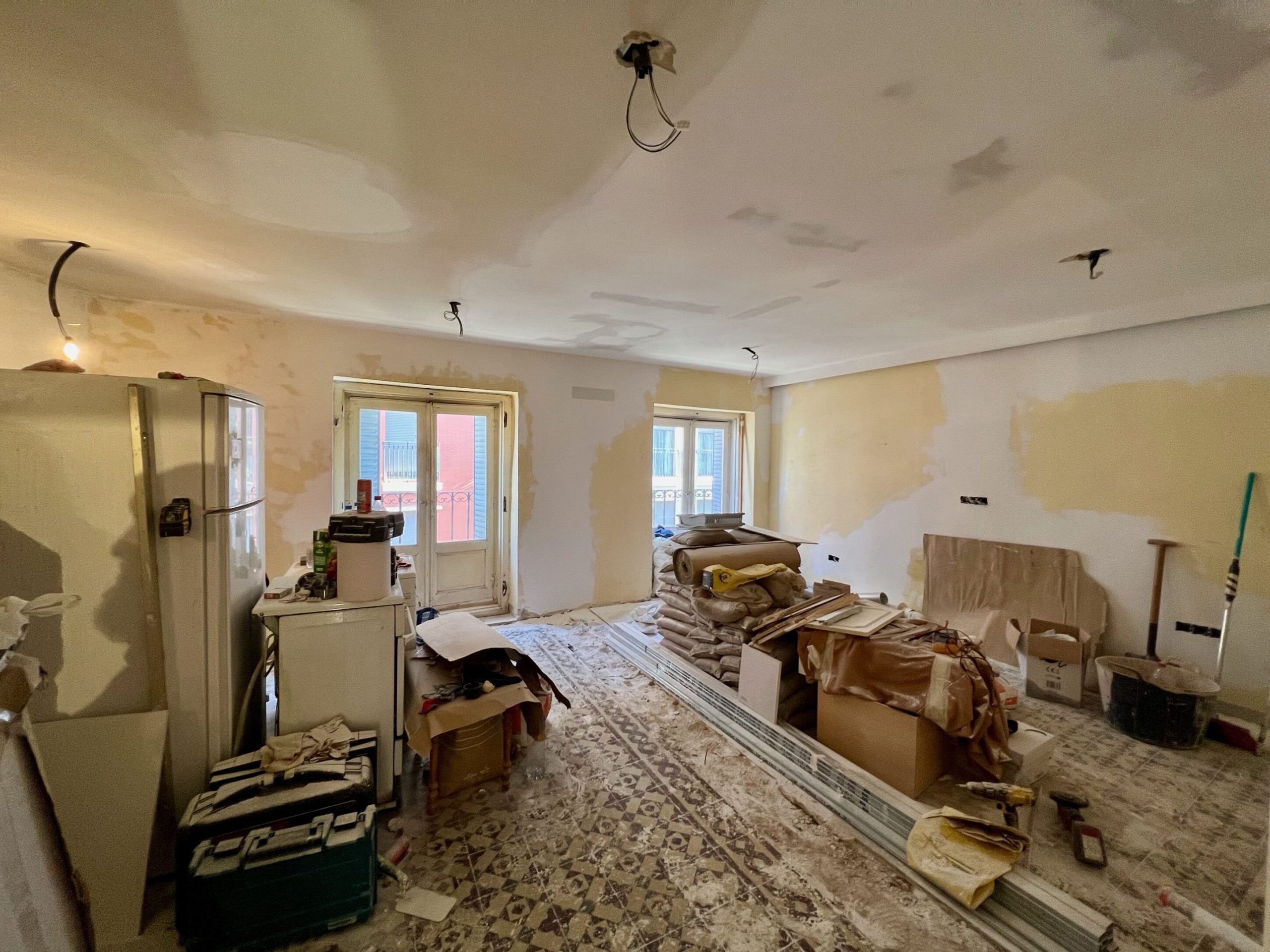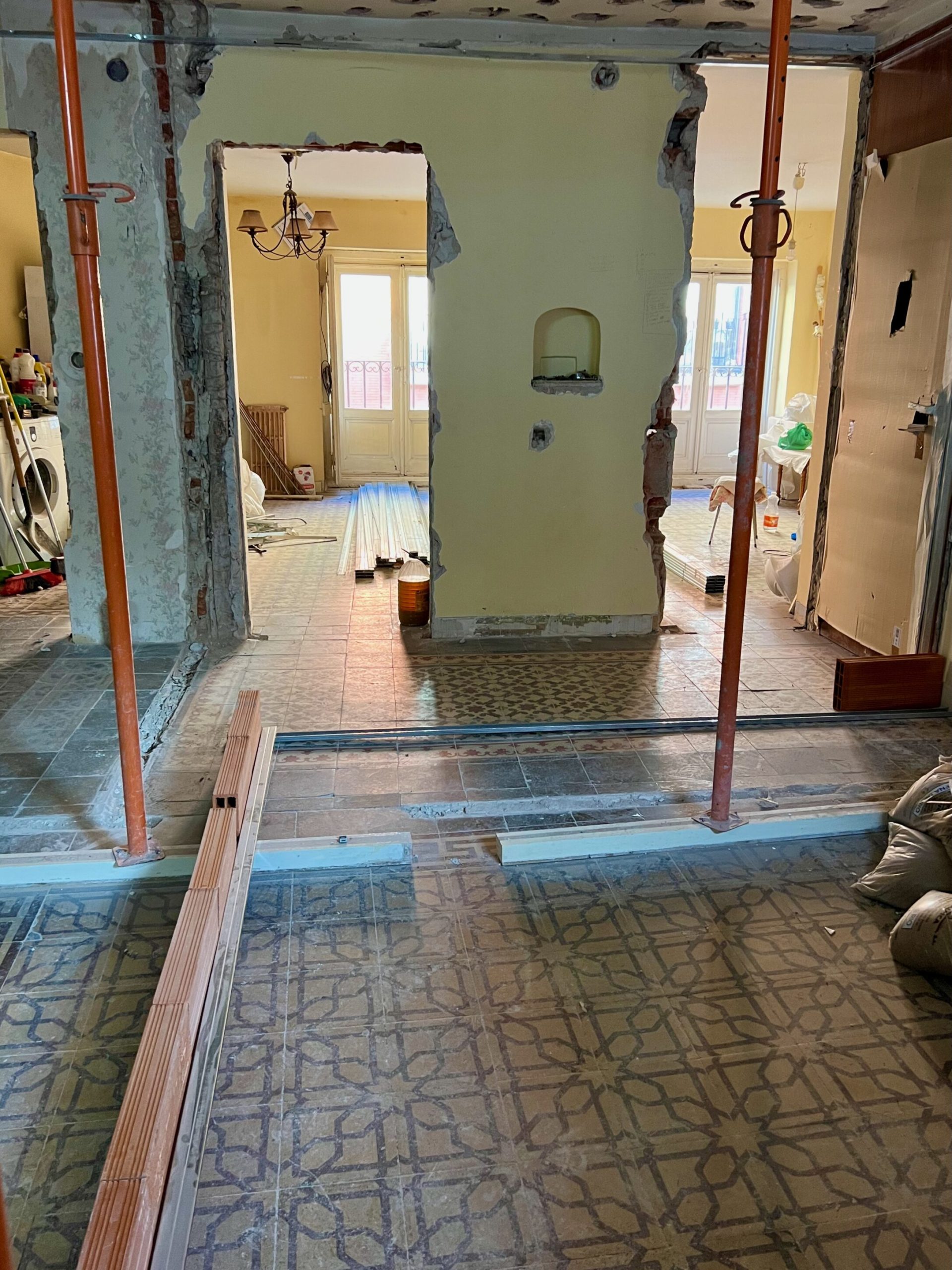 Nos encargaron la reforma integral de un piso muy deteriorado de aproximadamente 80 m², originalmente distribuido en tres dormitorios y un baño. El estado general de la vivienda, unido al deseo de los propietarios de contar con un hogar más funcional y moderno, motivó una intervención completa que comenzó con el derribo de todos los tabiques interiores, respetando únicamente los muros de carga, para permitir el desarrollo de un nuevo proyecto arquitectónico tomando como base un plano elaborado por el mismo propietario.